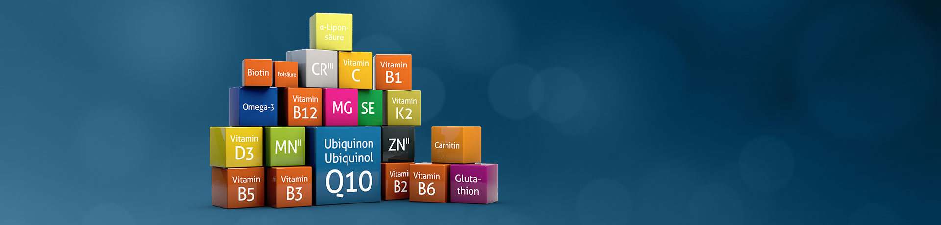 Eine Schlüsselsubstanz in den Mitochondrien, den „Kraftwerken unserer Zellen“, ist Q10 (Ubiquinol / Ubiquinon). Es wird in allen Mitochondrien in ausreichender Menge benötigt. Weitere wichtige Mikronährstoffe für die Mitochondrien sind z.B. Vitamin C, B-Vitamine, Magnesium, Mangan, Selen, Zink, alpha-Liponsäure, Carnitin und Omega-3-Fettsäuren.